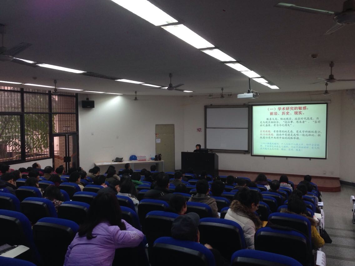 唐莲英教授从“学者的责任、兴趣、使命”,“学术研究的悟性和机遇”,“课题申报的注意的问题”等三个方面作了指导讲座。唐教授结合个人和团队成员申报国家社科基金重大项目的经历,就项目如何选题、如何撰写好申报材料,后期如何修改完善进行了详细讲解,她还特别强调,在学术研究中“情商”所起到的不可估量的作用,要甘于“冷板凳的寂寞、资料收集的繁琐、实地考察的艰辛、各种问题的困惑”才会有“成果收获的欣慰”。她希望各位老师要树立信心、认真选题、科学论证、认真填写,因为国家社科基金的申报不仅仅“是实力的较量”,还是“人格的较量、心理的较量”。会上,各学院教师还就国家社科基金申报过程中遇到问题进行了积极提问。整个报告内容丰富、既有宏观把握,又从细节入手,具有很强的实用性和操作性。