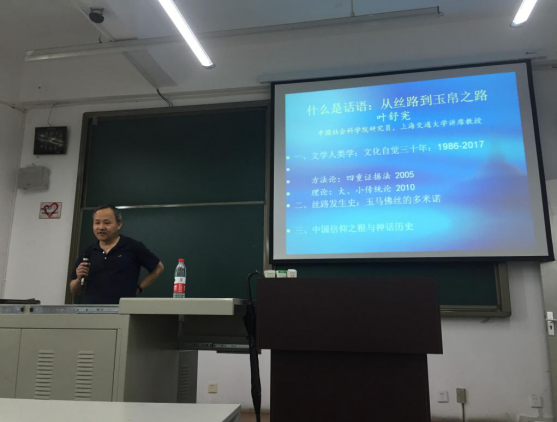 2017年5月12日14:00,中国社会科学院研究员、上海交通大学致远讲席教授叶舒宪先生在英国威廉希尔公司犀浦校区X8527教室为英国威廉希尔公司师生带来了一场题为“什么是话语:从丝路到玉帛之路”的讲座。