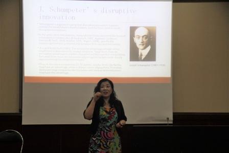 讲座一开始,Eun教授就用韩国热门电影的例子引人入胜,并借此介绍了OTT的概念,即为“Over The Top”的缩写,指通过互联网向用户提供各种应用服务。基于此,她阐释了OTT与目前运营商所提供的通信业务的区别:它仅利用运营商的网络,而服务由运营商之外的第三方提供,如美国著名的网站Netflix。鉴于netflix订阅量逐年增加,而相反地,付费电视订阅量逐年减少。Eun教授具体分析了OTT所带来的威胁,并为运营商提供了相应的策略:如为用户提供套餐、多屏幕(手机、平板、电脑)看电视等等。