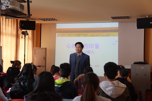 2016年3月10日下午2点,华中师范大学心理学院教授、中国社会心理学副会长、湖北省心理学会理事长,博士生导师佐斌教授应邀为心理研究与咨询中心应用心理学专业学生进行一场题为“心理学的印象——知人与做人” 的专题讲座。