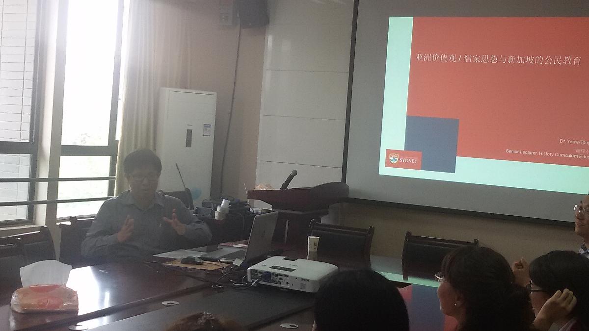 8月29日——9月1日,多伦多大学安大略教育研究院历史与比较教育谢耀东博士来我校开展系列学术交流活动。谢耀东博士现任悉尼大学高级讲师。近年来学术领域集中在新加坡,澳大利亚,和中国的历史与公民教育,新加坡高等教育,加拿大历史教育背景下的旅加华人历史等研究。马克思主义学院副院长胡子祥教授主持该系列活动。