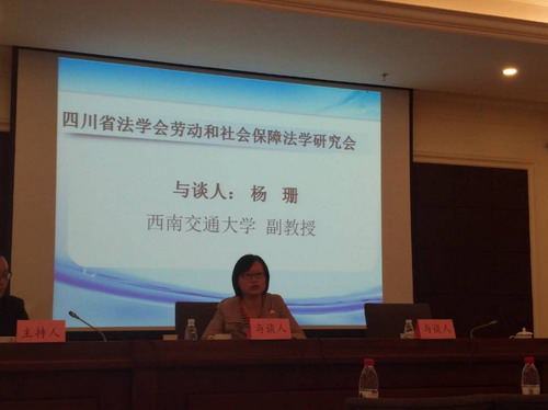 本次年会主题为“新业态下的劳动关系调整”,下设“‘互联网+’背景下劳动、用工形式与劳动关系”“供给侧结构性改革与社会保障”“自由贸易、劳工标准与劳动法”三个分议题。我院2016级硕士研究生陈玉昕、杨芸合作的《“一带一路”倡议下海外劳工权益保护法律问题研究》应邀在下午的第一研讨单元做主题发言;我院杨珊副教授应邀在第三研讨单元作为与谈人分别对《隔代照料会影响中国中老年人的健康吗?》《总经理的劳动法角色定位》《航空安全员休息期问题刍议》三篇论文予以了点评。