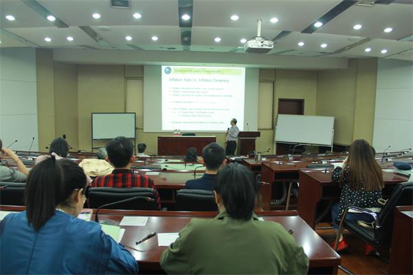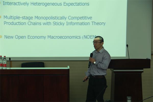 邓燕飞博士的讲座题目为“关于通货膨胀动态的理论和实证研究”。他首先介绍其研究主要由动机和整体框架、异质性预期、交互异质性预期、多级独占市场生产链和粘性信息理论以及NOEM五个部分构成。接着,邓博士讲解了通胀率和动态通货膨胀的含义及区别。随后,他向大家展示了其研究所需要回顾的理论模型。此外,他也向大家呈现了自己博士论文的思维导图,细致详细的展示了论文的写作思路。最后,邓博士也简要介绍了一下菲利普斯曲线的研究历史。在汇报结束后,朱宏泉教授针对模型的推导过程进行了简单的提问,邓博士对此给出了详细的解答并阐述了一下自己的想法。