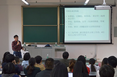 首先,周俊勋老师对陈教授莅临我校做学术讲座表示诚挚的欢迎,并简单介绍了陈教授在历史语言学领域提出的“语言演化的自组织协和模型”、语言接触领域的“无界有阶模型”和语言认知的“平行周遍模型”等研究成果。讲座开始,陈教授用一系列茶马古道上的真实图片分享了自己与其他五位学者在1990年代重走茶马古道的经历,并介绍了茶马古道的命名由来。讲座中,陈教授从饮茶、品茶、嗜茶和恃茶四个层次界定了茶马古道的性质,分析了茶马古道兴起和存在的两个必要条件:“恃茶性”和“远征性”。陈教授很有见地通过盐运古道、丝绸之路和茶马古道等人类古道的几次转型的分析,认为恃茶性和分离性使茶马古道得以出现并长期延续,茶马古道存活了早期古道,激活了古代商道,是远征文化的命脉。接着,陈教授介绍了茶马古道的转型和向世界延伸存在的语言地理证据,他认为茶马古道是人类语言文化接触的关键区域,它的兴起和持续使茶马古道网络上产生了深度语言文化接触,各种复杂的接触机制得以在网络上出现,为研究语言接触提供了极其重要的平台,并就茶马古道上的语势问题展开了讨论,举例说明了弱势语言对强势语言是语言母语干扰的主要方向,强势语言对弱势语言是语言借贷的主要方向。